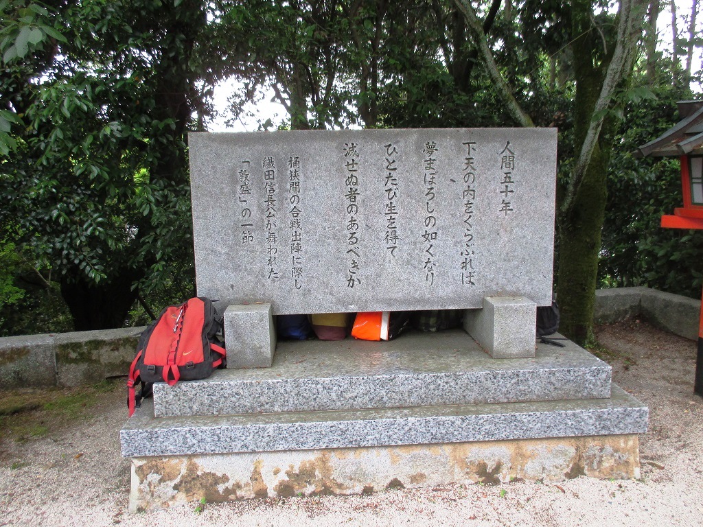 境内には信長が好んだという「敦盛」の一説「人間五十年、下天の内をくらぶれば、夢まぼろしの如くなり」が刻まれた石碑も立っている。- 旅行時期