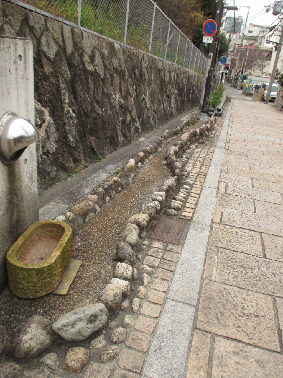 現在、水は湧いていませんが、この天神坂には、当時の雰囲気を再現した水路が設けられています。- 旅行時期