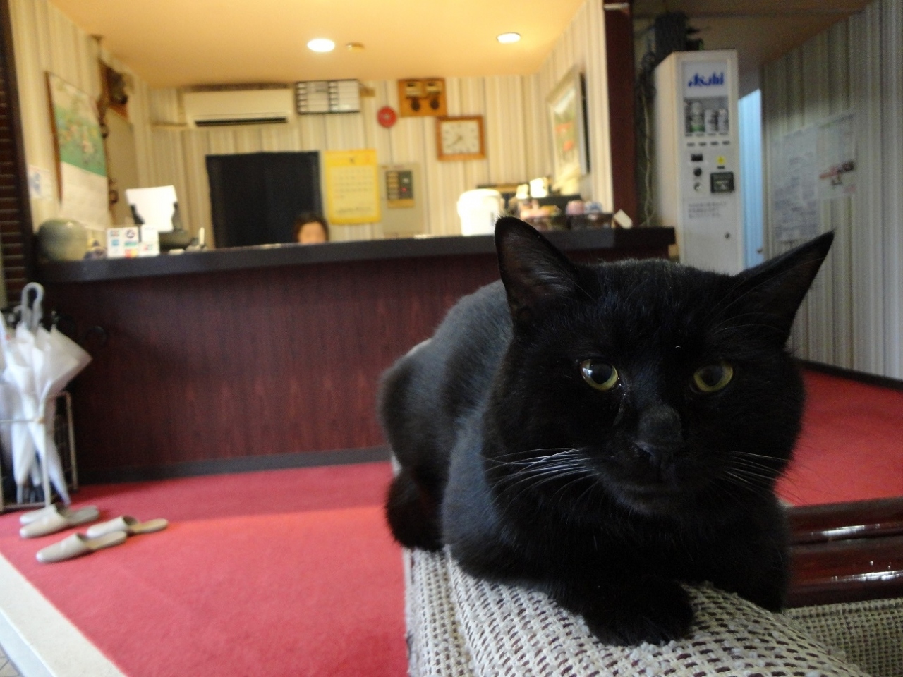 そんなホテルの看板娘は、ロビーの椅子で出迎えてくれる黒猫。