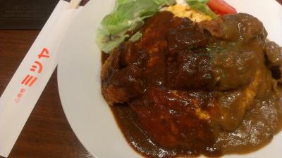 名物・オムライスにビーフカツが乗り、デミグラスソースとカレーソースがかかったオムライスを食べましたが、安定の美味しさです。
