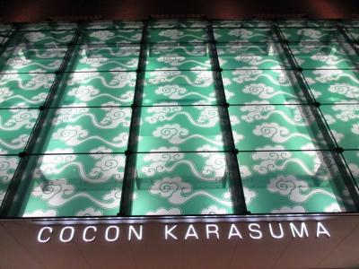 「カラスマ」とかけているのか、正面玄関は「カラクサ」模様に彩られ目立ちます。