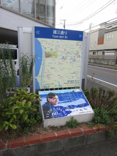 雄三通り周辺の地図と その下には 代表曲「海 その愛」の 歌詞が刻まれ...