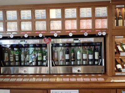 JR石和温泉駅の建物の1Fにある観光案内所です。入ってすぐ左側に、ワインの試飲ができるサーバーがありました。日本酒などでは見たことがありましたが、ワインは珍しいですね。観光のパンフレットなどもらえます。