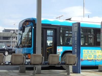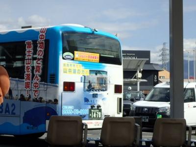 以前静岡でも乗ったことがありましたが、山梨でも運行していました。石和温泉から甲府に行くルートに乗りましたが、出発点は富士五湖の方のようでした。車体には山中湖で運行している水陸両用バスの宣伝が表示されていました。