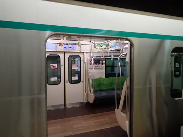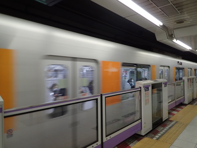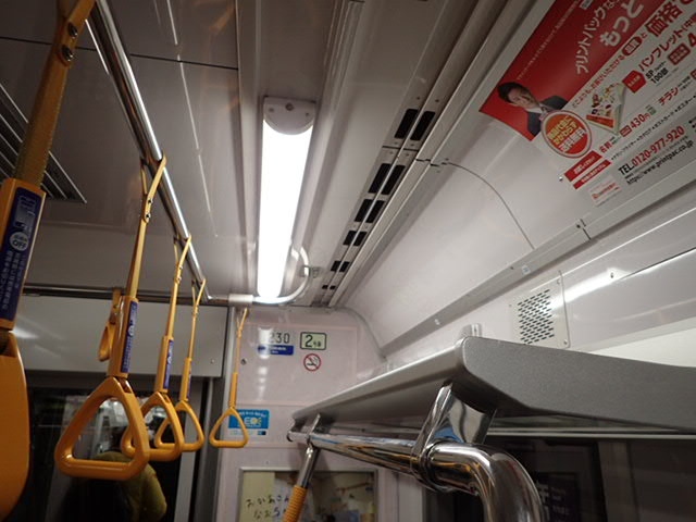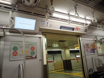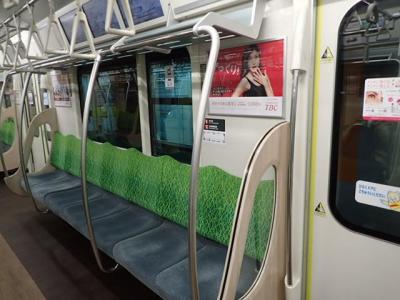 他の地下鉄や鉄道より車両の規模が小さいようです。座席の上にある棚も、天井までの高さおよび奥行が狭くて、大き目の荷物は置きにくい感じでした。新しい路線なのでやむをえませんが、ホームは地下深いところが多いです。