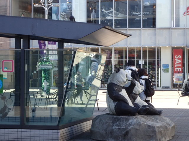 名前にある通り、パンダのモニュメントが置いてあるのですが、残念ながらあまりかわいい感じではありません。それでも一緒に写真をとっている人はちょこちょこ見かけますが。JR御徒町駅南口改札でてすぐのところにあります。