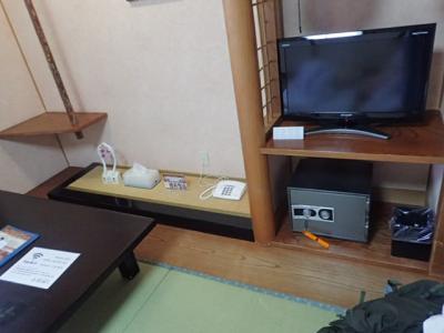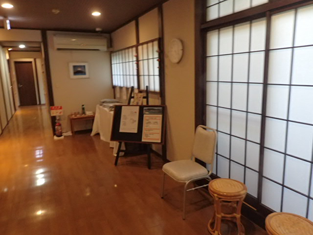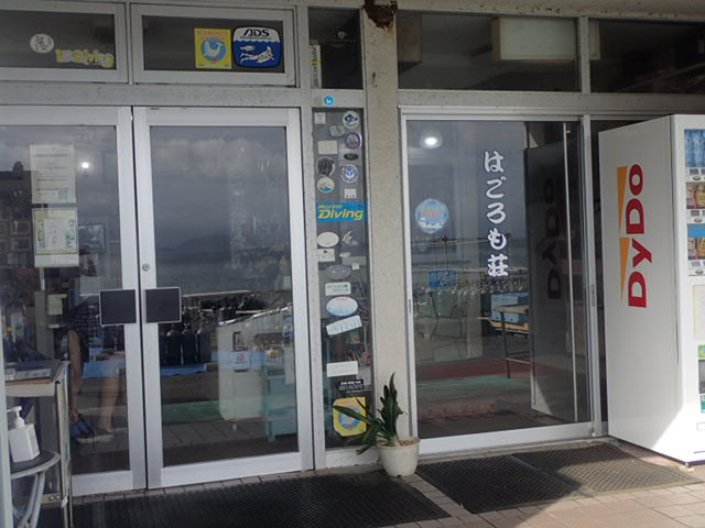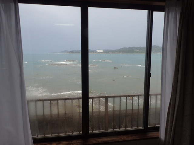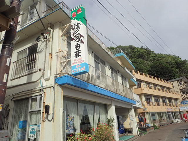 海水浴客が多い時期は海の家が設置されていますが、もう撤去されていました。宿は海水浴場の浜辺の前にあり、一部の部屋はオーシャンビューです。また、天然温泉の大浴場もあります。設備は新しくはなくシンプルです。