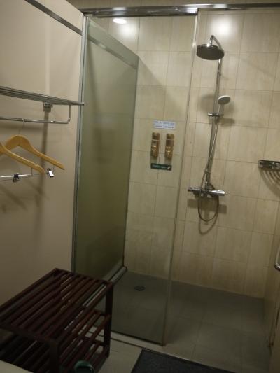 新しくて施設も部屋もきれいでした。モノレールの駅からも近く、アクセスも便利です。最上階に大浴場があります。お湯は熱すぎず、ちょうど良かったです。ツインでしたが、ミネラルウォーターのボトルが2本ついてました。
