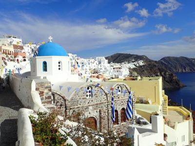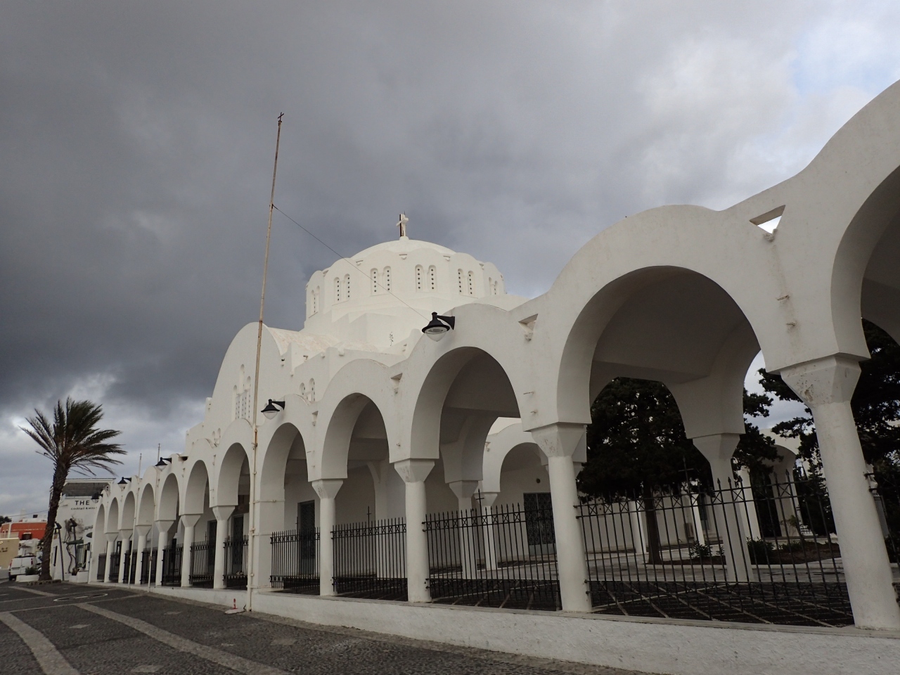 イアのバスターミナルから、メインスクエアを通って、メインの通りをイア城塞の方に向かって歩いていくと左側にありました。白い壁に青という、「いかにもイア」というカラーリングできれいな教会でした。オフシーズンで人は少なかったです。