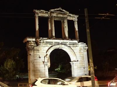 2世紀のローマ時代の建築で、ローマの皇帝であったアドリアノスがアテネに来たことを記念してつくられたとのことです。ゼウス神殿に隣接していて、古代アテネの玄関口としての位置づけだったそうです。大通りに面しています。