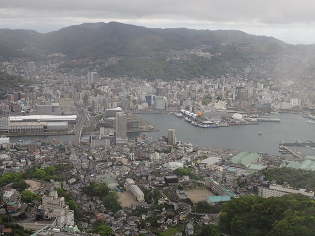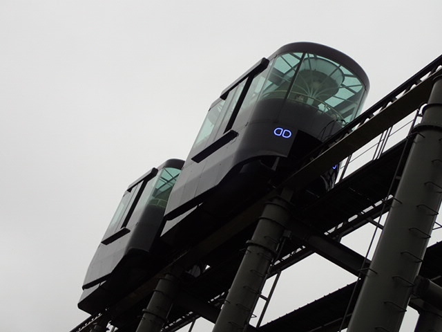 稲佐山(標高333メートル)の中腹にある駐車場にある駅で、山頂までのスロープカーを運行しています(ロープウェイは中腹ではなくふもとから)。2020年1月にできたそうで、まだ新しかったです。運賃は往復500円、片道300円でした。