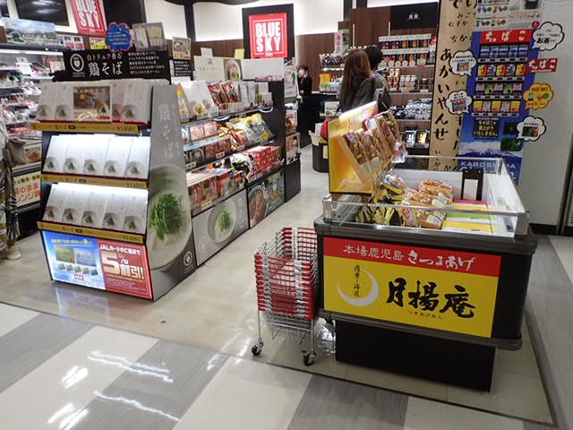 鹿児島空港の出発フロア(2F)にあるJAL系列の土産物等販売ショップです。同じフロアに、BLUE SKYが2件ありますが、こちらはフロアの中央に近い方の店になります。JALカード提示で、一定額以上購入すれば割引あります。