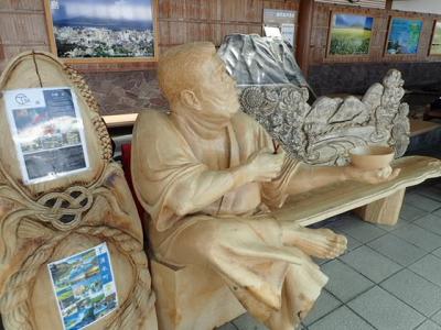 鹿児島空港のターミナルビル1Fの屋外にありました。チェーンソーで作成した西郷隆盛の木の像もありました。足湯には、桜島の模型?もあるなど工夫してありました。空港で時間が余ったときに行ってみるのに良いと思います。