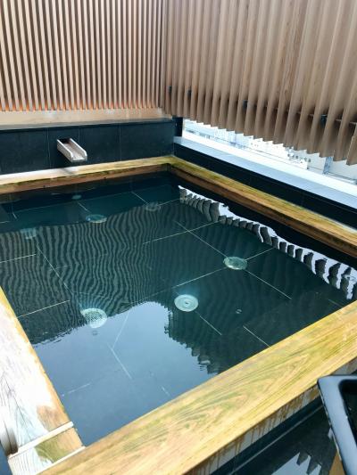 最上階の18階に大浴場があり、露天風呂は伊豆から運んでいる温泉です。