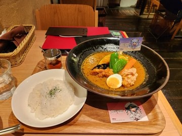 北18条駅にあるスープカレー店。スタッフの人が明るく親切で好印象でした。会計は現金のみ。野菜は油で揚げており、素材の味が出ていました。スープはあっさりした感じでしたが、少し味が薄かった感じがあります。(当方が体調不良で味覚がおかしくなっていたのもあるかもですが)チキンはスパイスがきいていました。