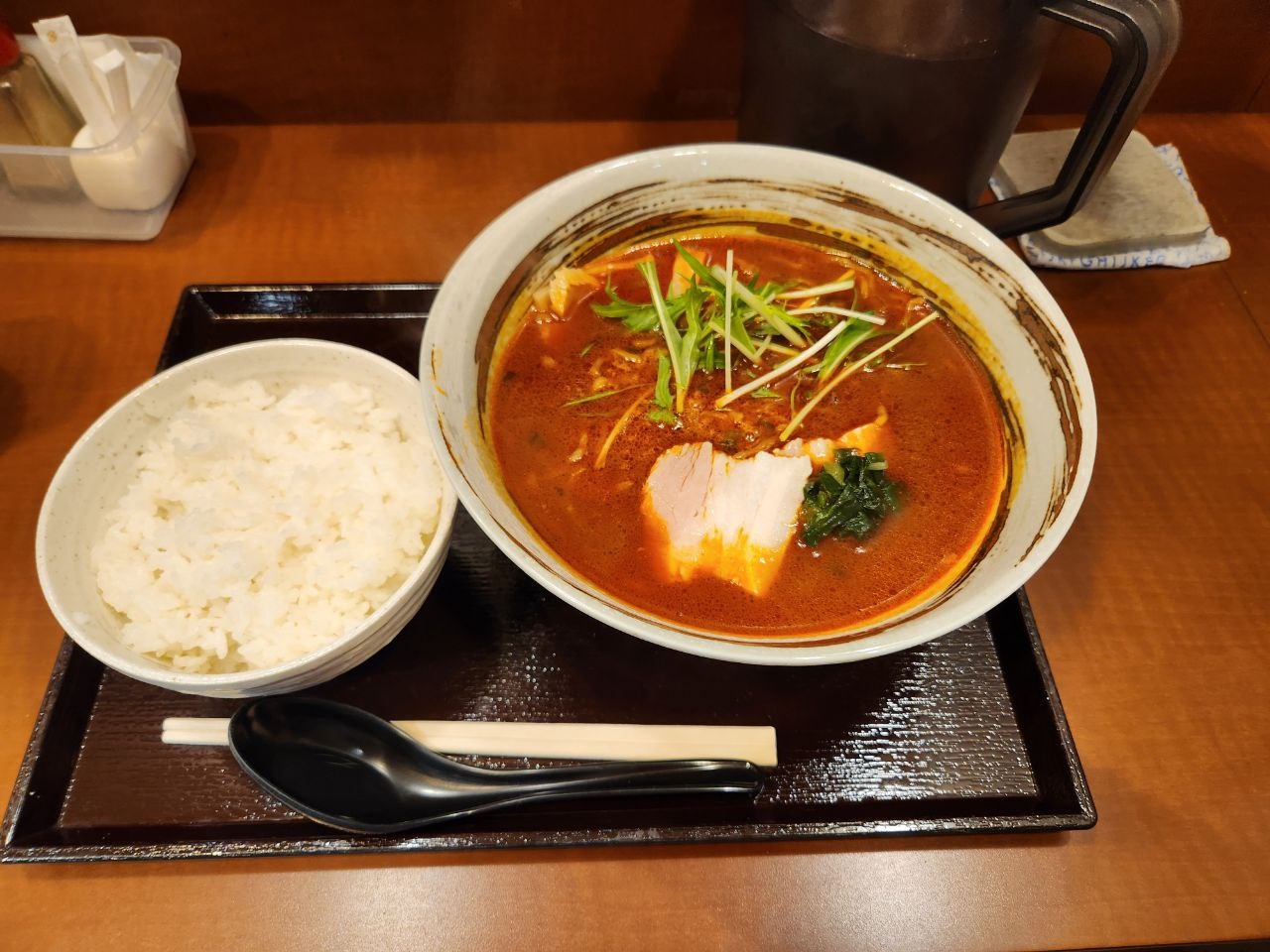 札幌の大通駅エリアにあるお店。テレビ塔の地下にあります。券売機タイプで、ランチタイムには割引のサイドメニューあり。今回は辛味を追加したタンメンを注文。