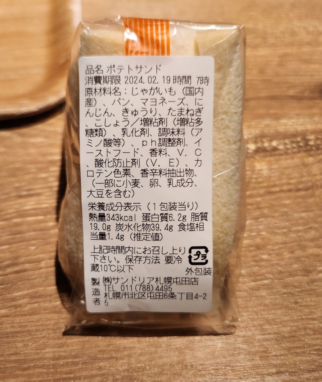 補充直前の時間には行列ができます。今回はポテトサンドを購入。甘みのあるポテトサラダに、しっかりしたパンでした。- 旅行時期