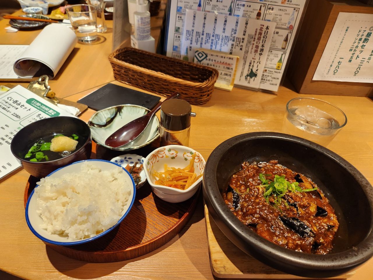 ワインの扱いが豊富なようですが、今回はランチのみ利用。小鍋や中華など、洋食以外のメニューもいろいろありました。今回は麻婆茄子定食を注文。主菜は石焼ビビンパの器のような鍋入りで、長い間熱々を堪能できました。濃いめのしっかりした味わいでした。