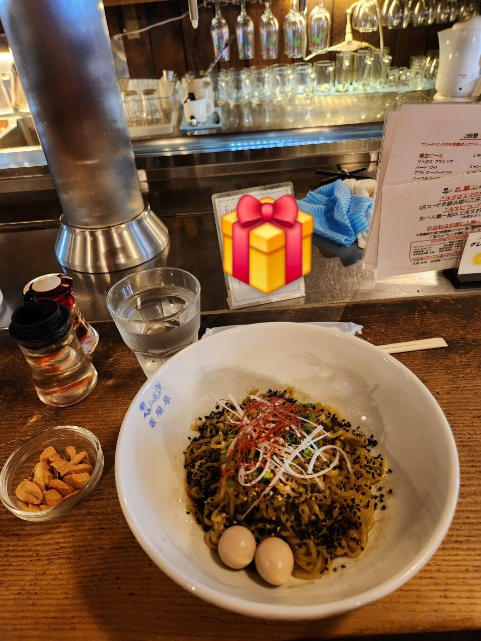 バーのようなおしゃれな店内で、油そばが有名です。注文に関しては、スマホを使用しラインからQRコードで注文する形式。ただ、スマホを持っていない人や電池切れ・電波がつながりにくいなどでこちらの注文が難しい場合は口頭注文もOKでした。