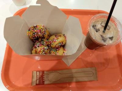 今回はチョコがけドーナツを注文。揚げたてを提供するため、少し時間はかかります。食べ応えはもちもちした食感で、ドーナツ本体は甘さ控えめ。チョコの甘さはきいていました。