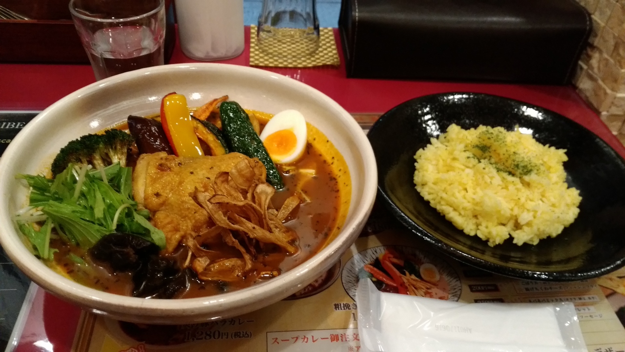 今回はチキン野菜カレーを注文。スープはフルーティー感のある風味でした。一方で薬膳のような成分があるように覚えました。味は良く、具材はチキンは柔らかくも歯ごたえがありバランスがよかったと思います。