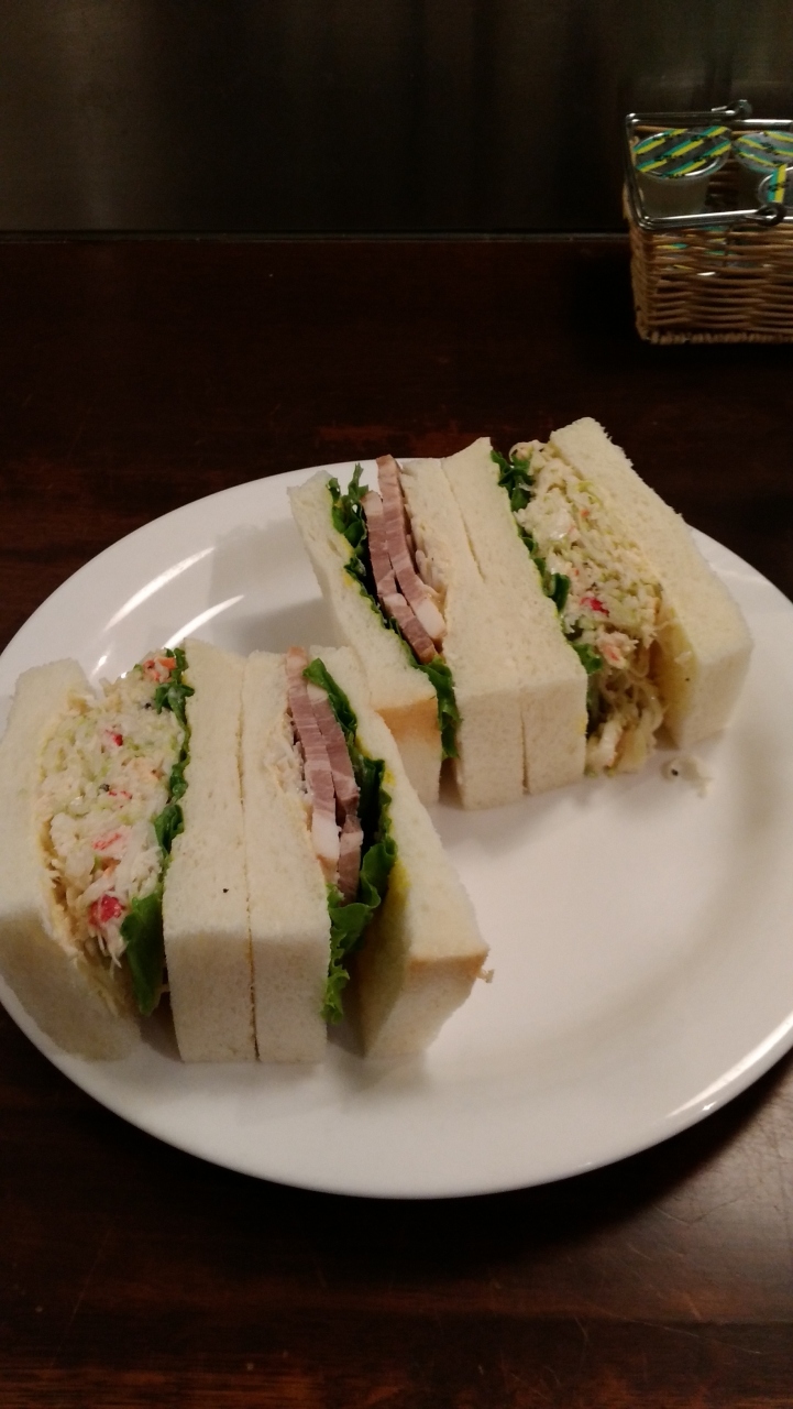 ある人に薦められて利用。たらばサンドが一番人気と言うサンドイッチ専門のカフェです。たらばサンドとネギチャーシューサンドのセットを注文。サンドイッチのボリュームはかなりのもので、小食の人であれば1セットでお腹いっぱいになりそうです。