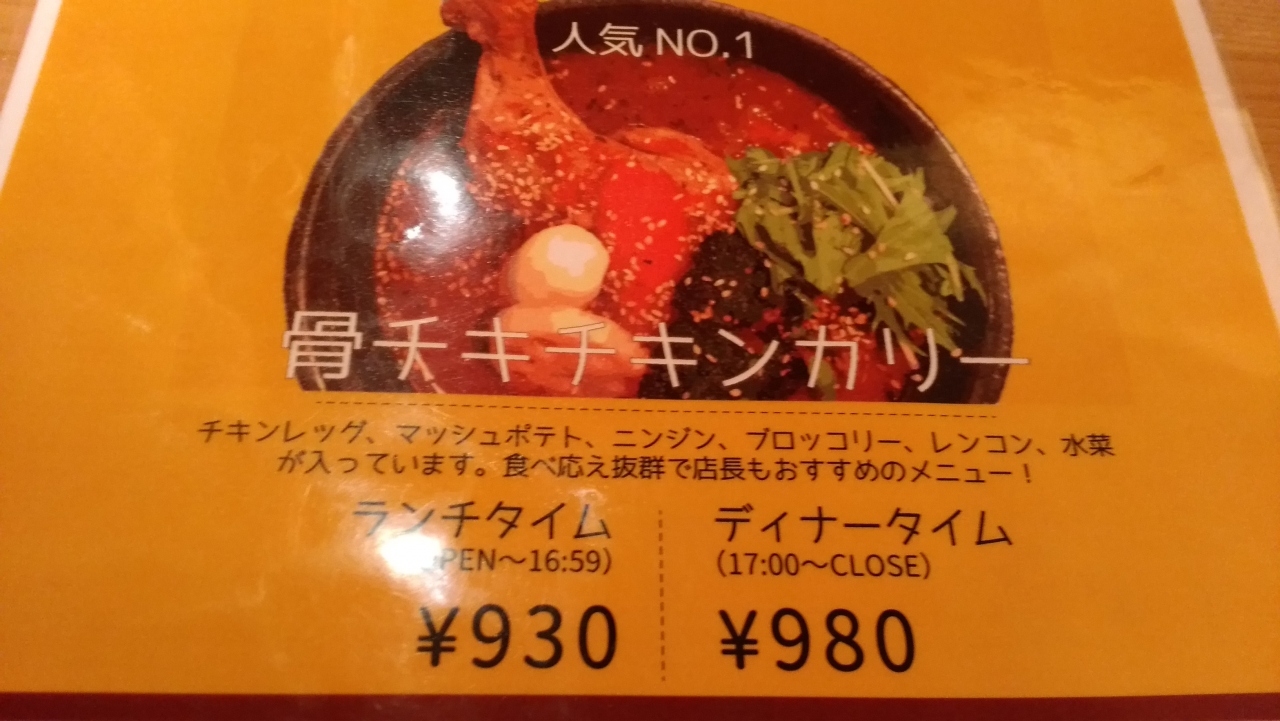 こっさり(こってり+あっさり)スープで有名なスープカレー。薬膳ぽいスパイシーさがありますが、薬っぽくはありません。チキンカレーが人気メニューで、千円以内のメニューもあります。