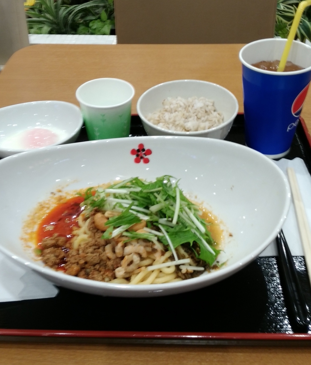 汁なし担々麺がメインの店で、火曜日に利用しました。この日は担々麺ハーフと麦飯+温玉やドリンクがセットになったメニューを注文しました。レギュラーの担々麺は千円以内のメニューが多く、汁ありや野菜多めのメニューもありました。