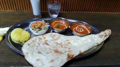 ランチにて利用。ネパールカレーとナンやライス、サラダなどのセットメニューがいろいろありました。ランチは日替わりカレーと数種カレーのセットがあり、今回は二種のカレーを楽しめるセットを注文。ラッシーは甘すぎずおいしく飲めました。カレーはキーマとエビでした。辛さ控えめにしたのですが、エビカレーはかなり辛く素材の味がわかりにくかったです。キーマは、肉の臭みはなかったのですが若干薄味で少々物足りなく感じました。ナンについては、甘い部分と無味な部分がありました。熱々さはよかったのですが、少し粉っぽい感じもありました。全体的に、少し期待外れで残念でした。スタッフの対応は普通だったと思います。