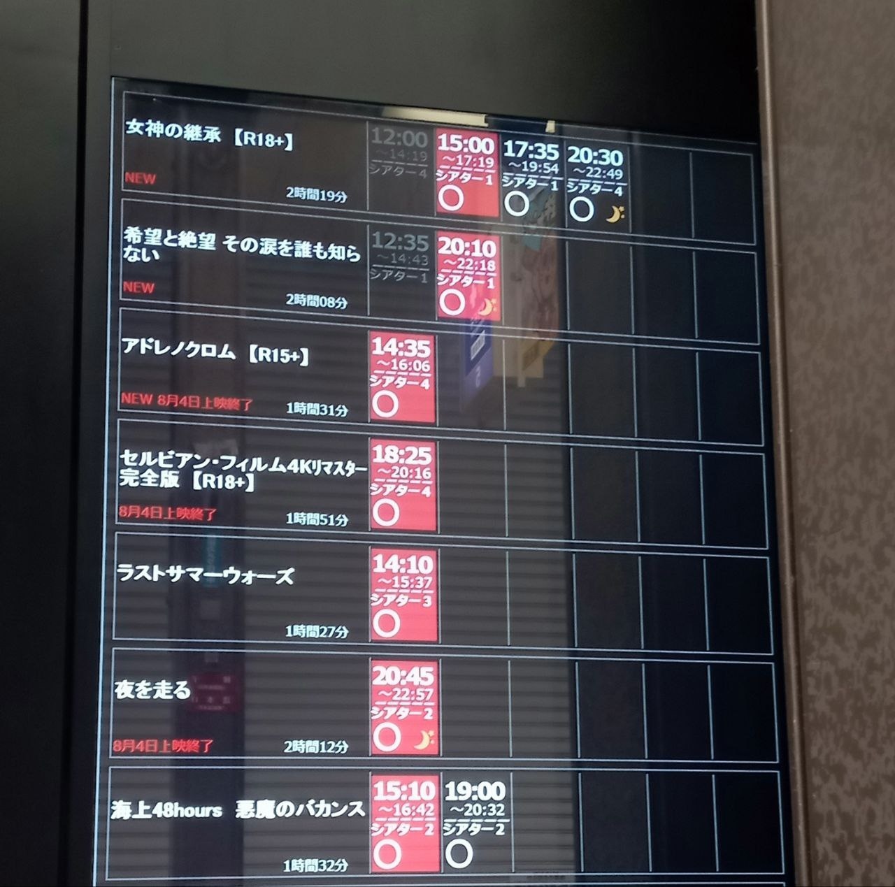 ロビーやシアターはきれいな内装と感じました。上映会場へ行くには、シアターによって階段の上り下りがあります。エレベーターがあるかわからないので、車いすの人だと厳しいかもしれません。シアター内の座席は座り心地は良いですが、トレーを置くスペースは足元になります。あと、シアターに入るのにマスクがいるようですが顎かけでもOKでした。