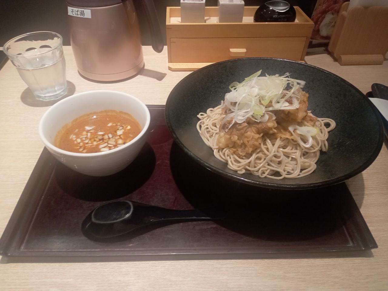 サッポロファクトリーにできた、つけ麺そば専門店のお店。合い盛りにて注文しました。