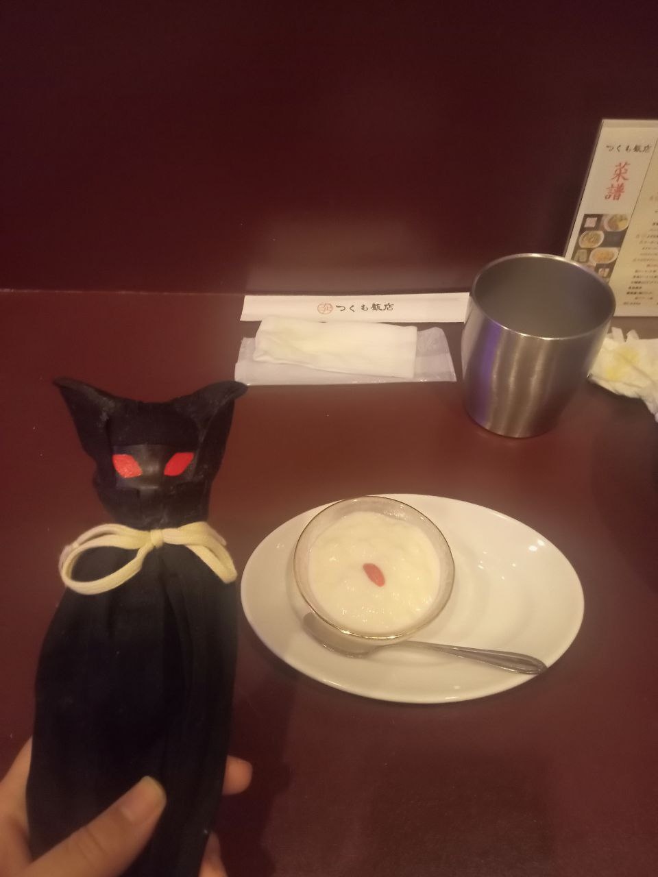 夏季限定サービスかもしれないですが、玄米パフらしきものが入った緑茶(玄米茶かも)もいただきました。 ちなみに餃子やカレーのテイクアウトメニューもありました。