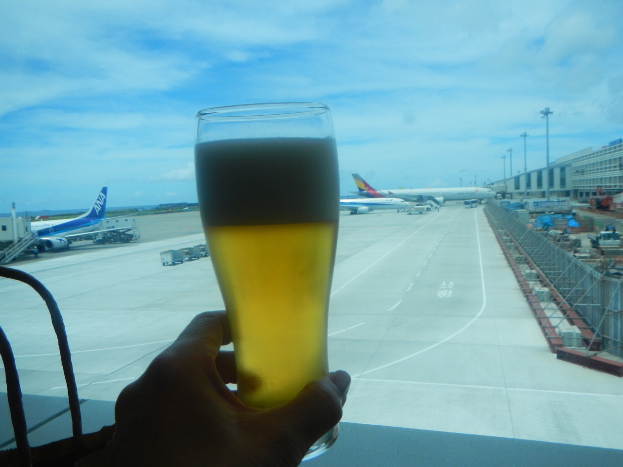 発着便の多い那覇空港国内線ターミナル。利用者の多さに比べて中は狭め。ただ窓が大きく滑走路が見えるのが嬉しいです。混雑しているためにゆったりとくつろぐ雰囲気ではないのが残念。ビールがオリオン生なのが個人的には〇です。