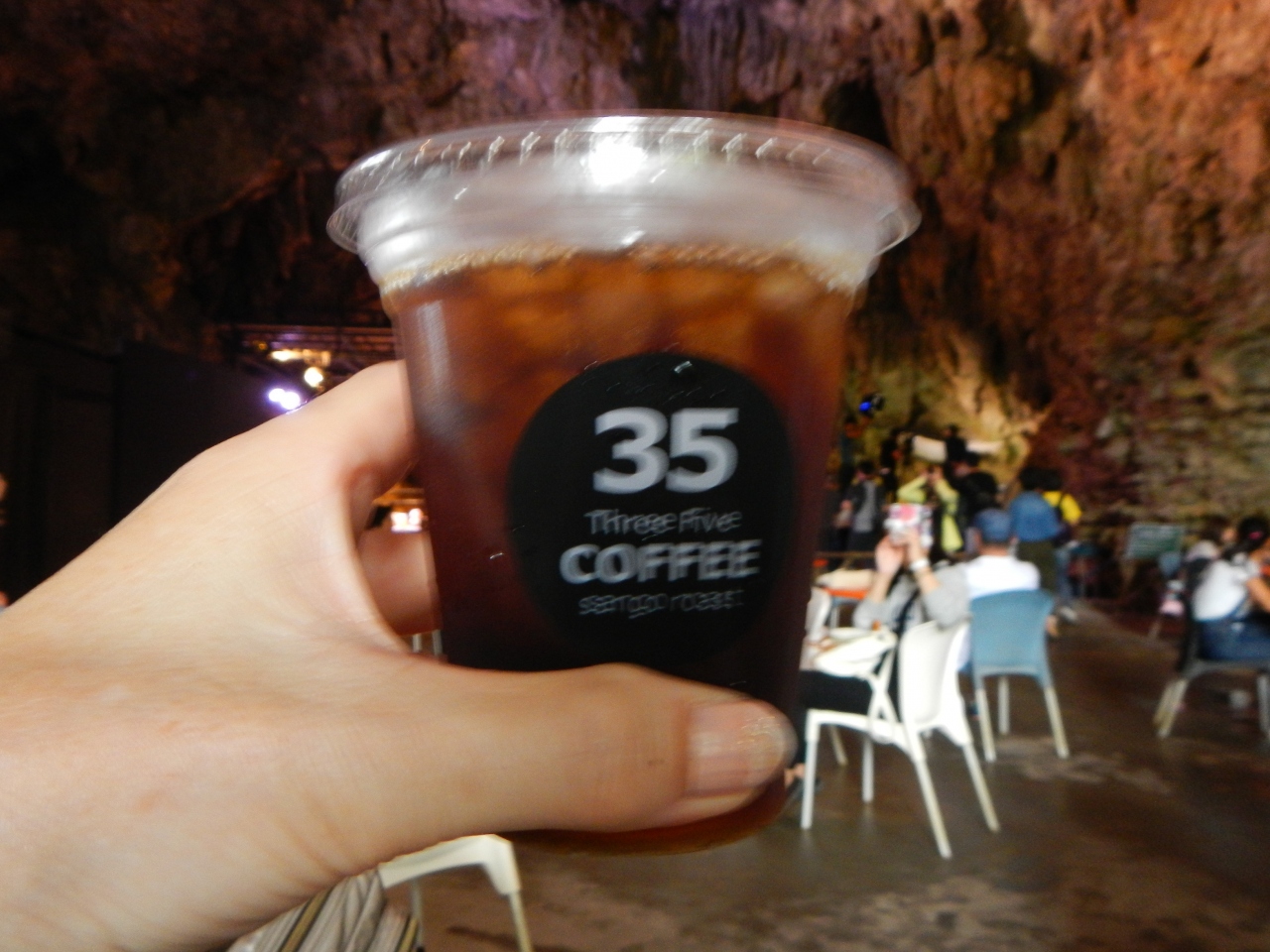 自然の洞窟そのままのカフェ。上からお水が滴ってくるのも自然ならでは醍醐味。