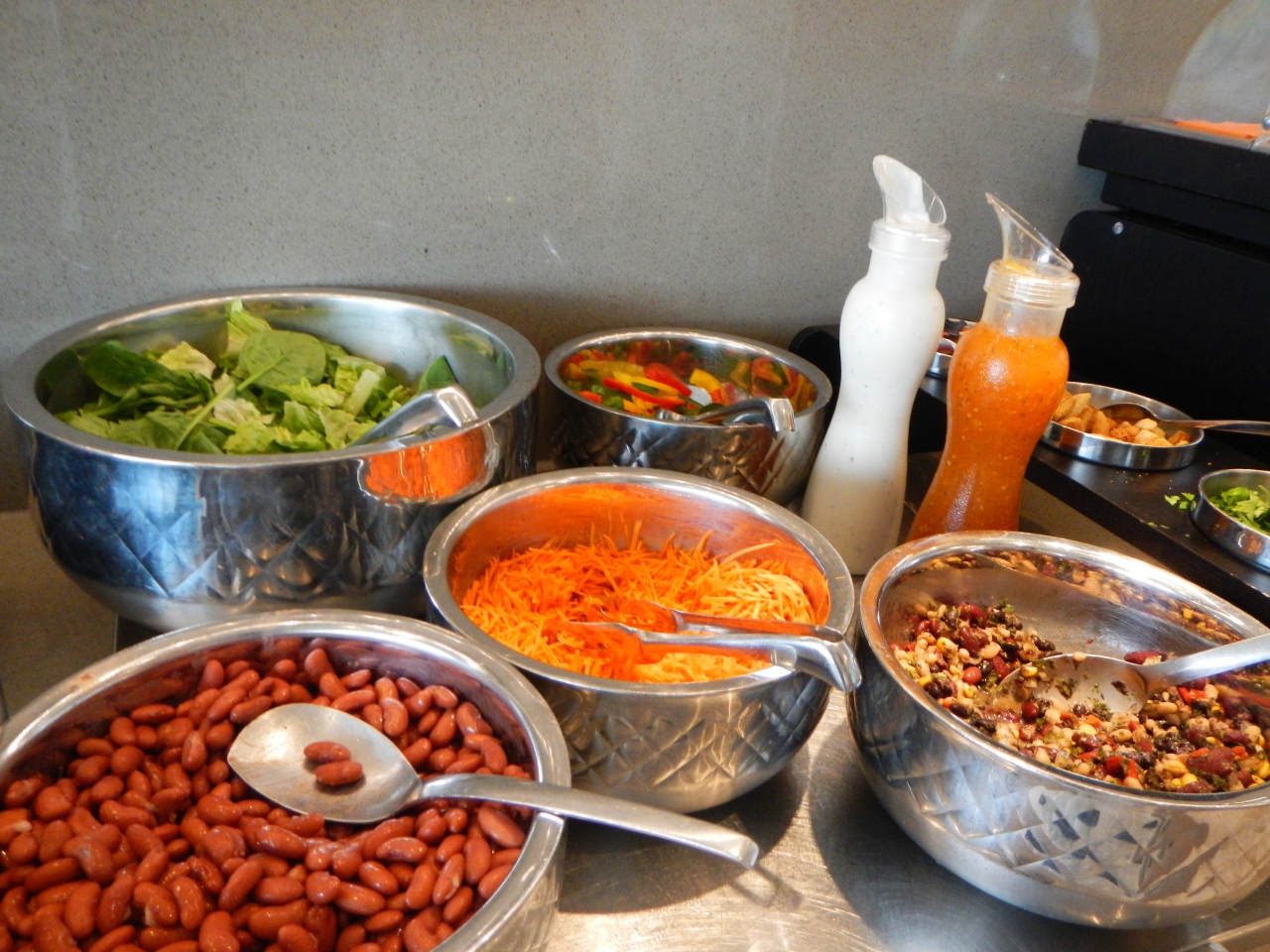 ④朝食は最上階のレストランでのビュッフェ。生野菜も食べられる安心感あり。