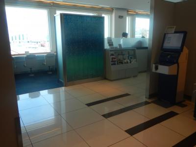 ラウンジ内はかなり広めです。ソフトドリンクとフードのカウンターは2カ所。アルコール類は中央部のバーカウンターでリクエストします。