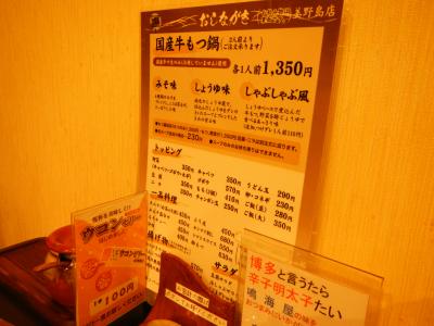 もつ鍋専門店らしくメニューはもつ鍋中心で少なめ。