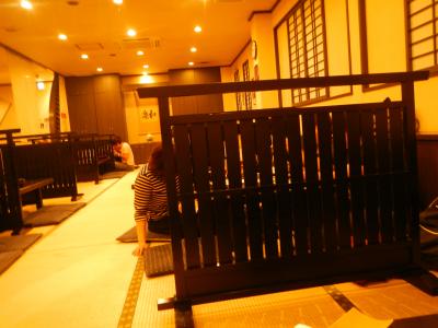 旅館のような入り口で靴を脱いで2階へ。大きなお座敷にたくさんのテーブルが並んでいます。簡単な仕切りですが間隔が広めなのか隣はほとんど気になりません。