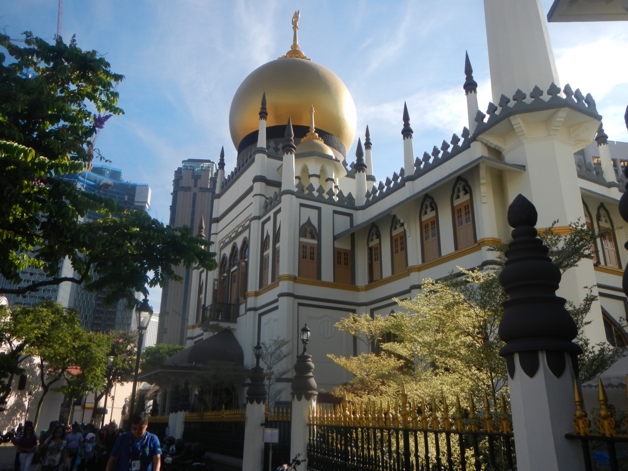 MRTラッフルズプレイスの駅からすぐ。高層ビルの並ぶエリアに時計台のような屋根が目立つお洒落な雰囲気。