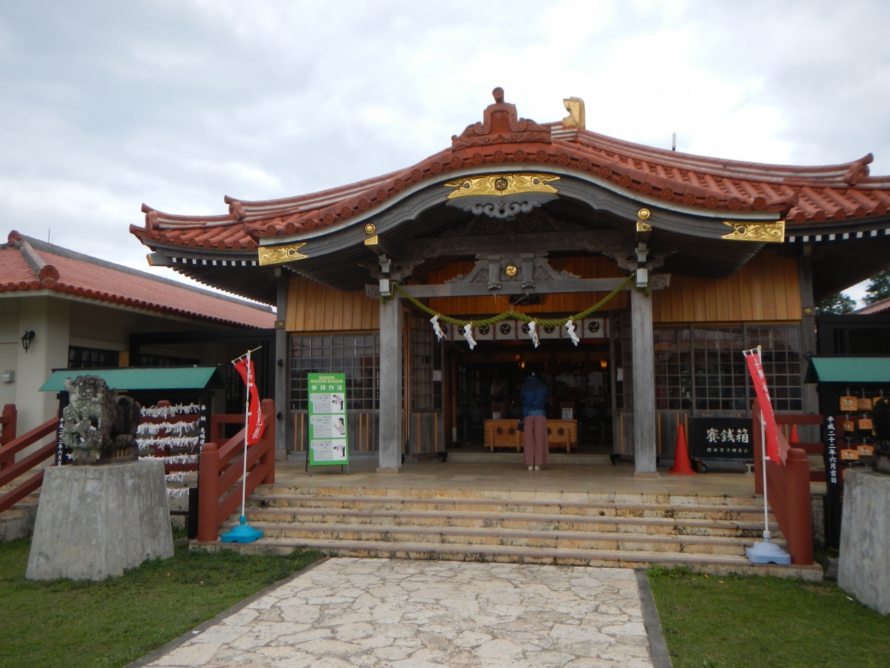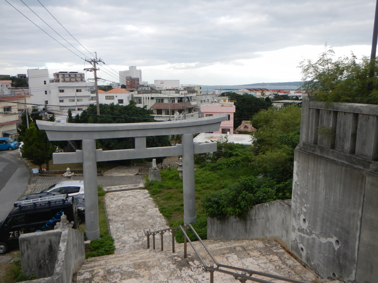 赤い屋根やシーサー風の狛犬さんなどに南国を感じるものの