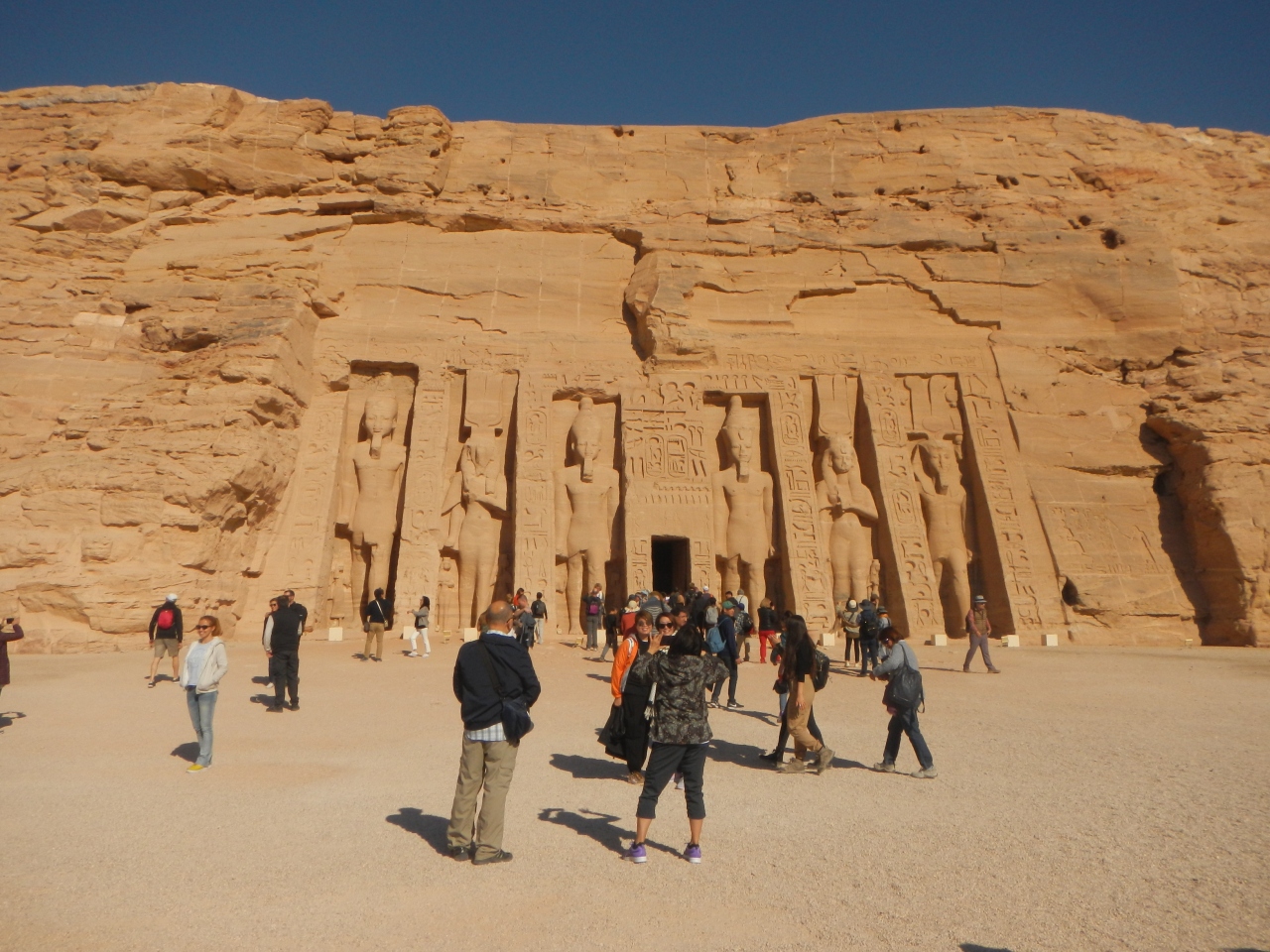 アブシンベル大神殿の奥側隣に建つ小神殿。ラムセス2世が最愛の王妃ネフェルタリにのためにハトホル神に捧げた神殿。ネフェルタリへの愛はすごいね~。