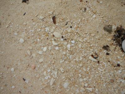 砂はホワイトビーチとは違いサンゴが砕けた粗い感じ・・名前の由来のプカシェルもあるかも・・。