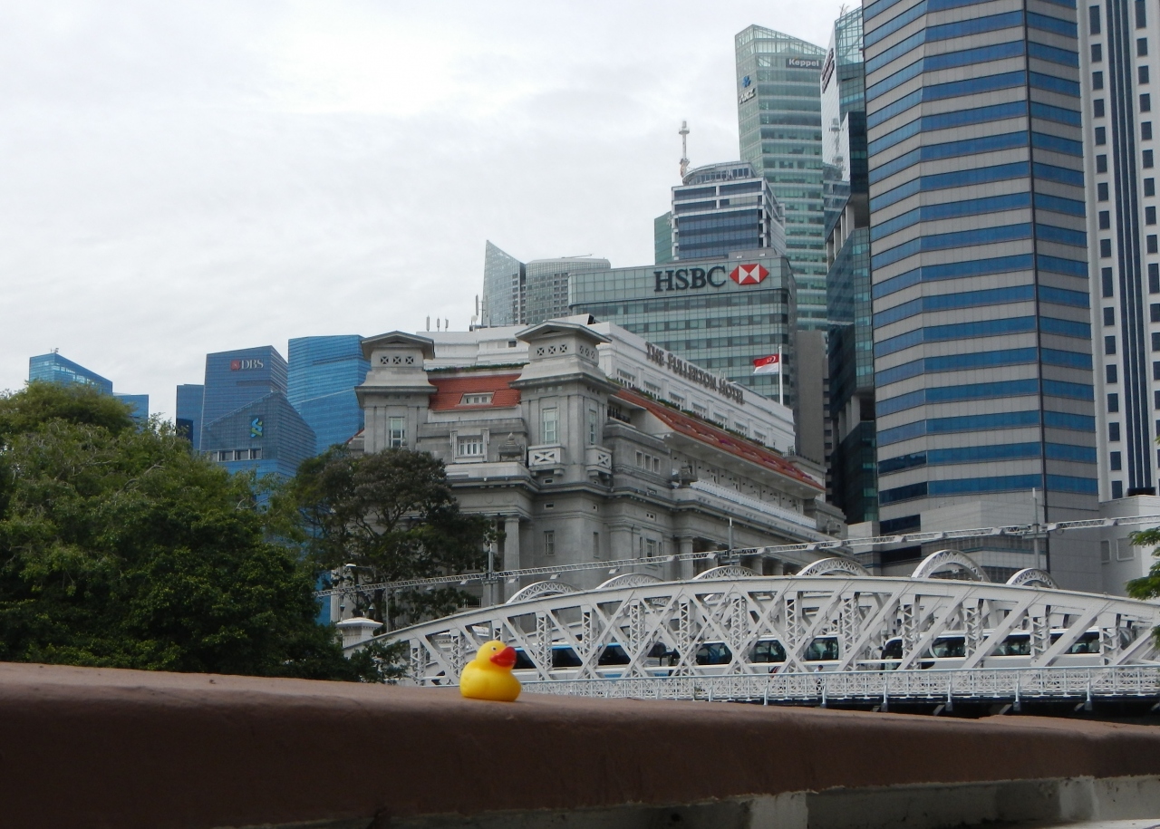 シンガポールリバーの向こうの高層ビル・・そしてちょっとレトロな雰囲気の