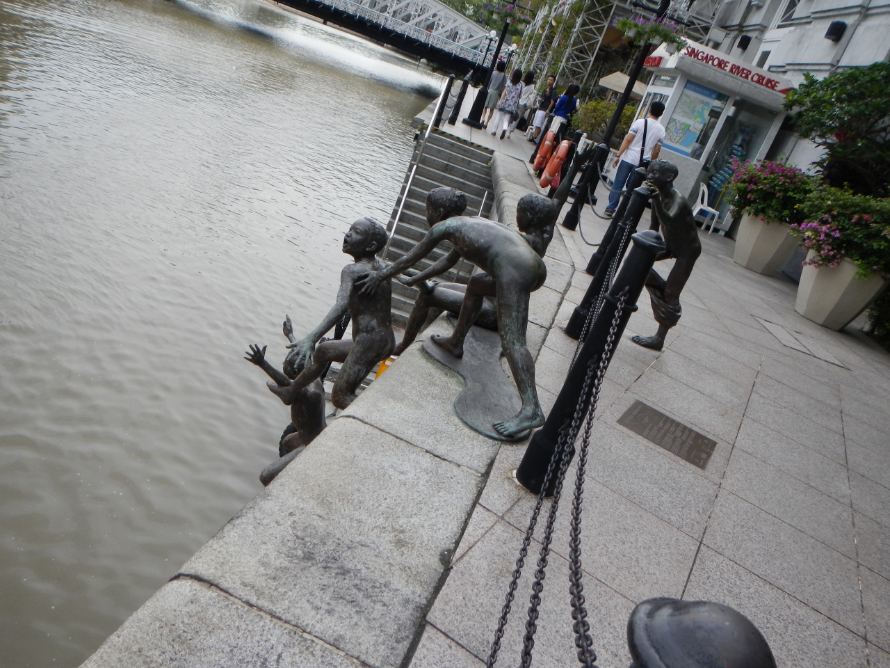 マリーナ地区・・シンガポールリバー沿いの散策路にある昔のシンガポールの様子を再現したピープルオブザリバー像。