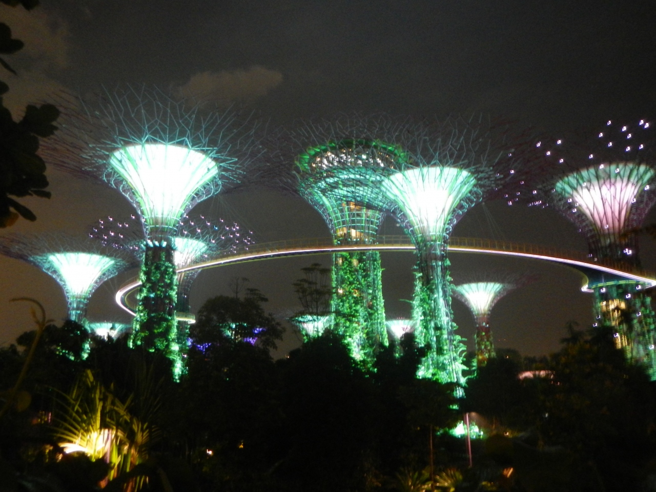 ガーデンバイザベイのスーパーツリーは夜はライトアップされてとても不思議な風景になります。そして19時45分~20時45分~の2回10分間の幻想的なショー「OCBCガーデンラプソディ」が行われます。