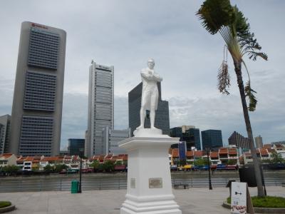 ボートキーを背景にラッフルズ卿の像が建っています。