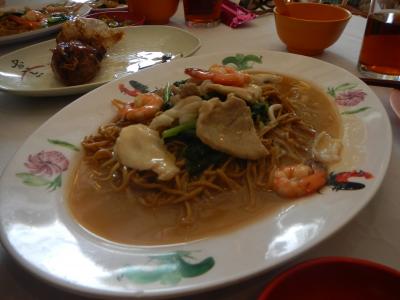 ペーパーチキン6個+レタスのオイスター炒めS+海鮮焼きそばSで38.2 SGD
