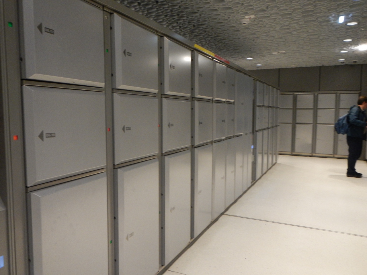 通路からちょっと入ったところにコインロッカー室のようになっている場所があり