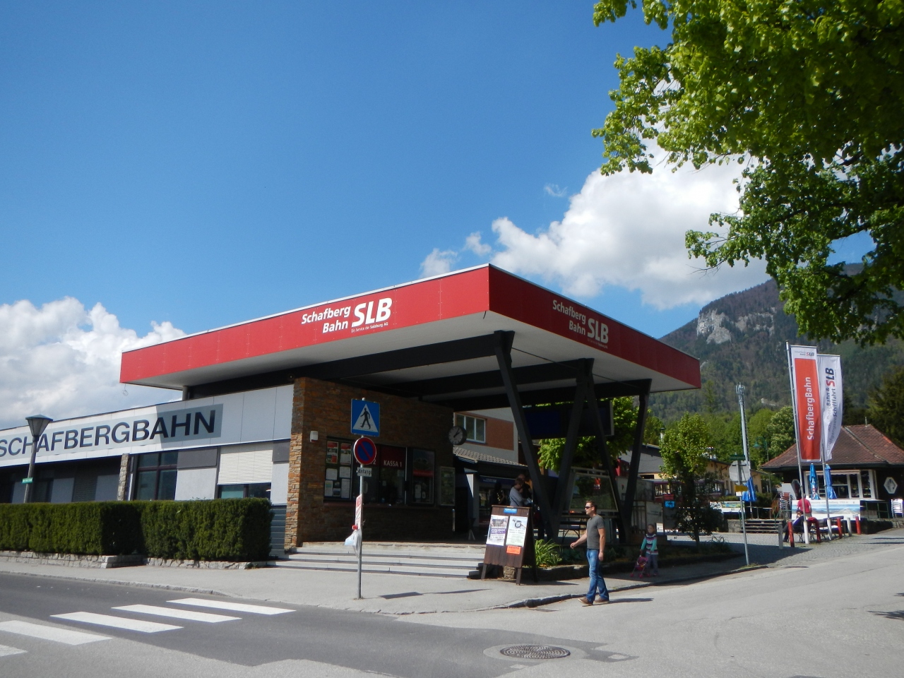 ?船着場「Schafbergbahn」からシャーフベルグ鉄道駅まではすぐ。