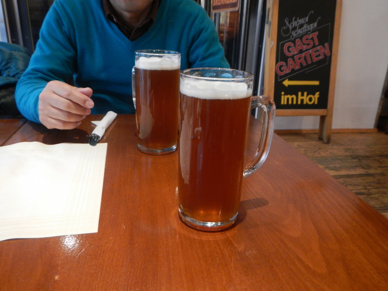 まずはお勧めのビール。これは店内にある醸造タンクからの出来立てビールですね。
